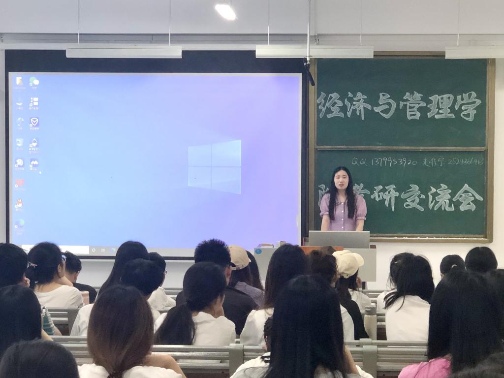 会上,六位同学轮流分享考研经验和建议。张卫诚从专业跨考、择校原因、各科复习经验、笔试、复试五个方面进行分享,以自己的切身经历向同学们介绍自己的考研经验。随后5位同学分别从备考复习、考研英语、心态调整、复试准备等方面进行经验分享,包括考研各科的复习方法、考研信心的树立、考研计划、备考心态的调整、生活饮食习惯、作息时间安排,以及有关选择专业方向和复试等方面的一些心得。其中,成功上岸南昌大学社会工作专业的张淑淑指出,备考报考要结合院校地理位置、学科评估、个人能力等方面进行综合考虑,并且要关注院校官网信息,同时结合考研博主建议制定合适的学习计划。
