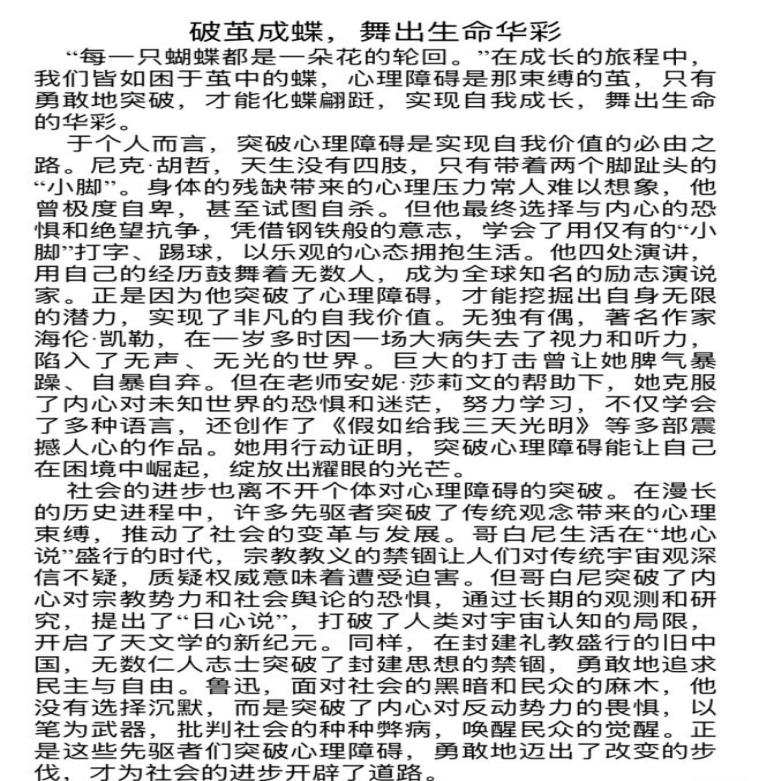 心理征文大赛:突破障碍,书写成长