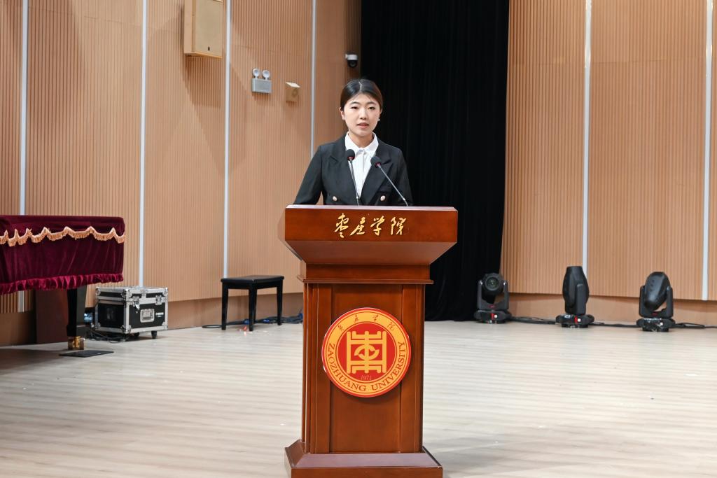 在校生代表张凤林在发言中向即将离校的师哥师姐们表达了敬意和祝福,愿他们能够勇敢地追求自己的梦想,并表示将继续为学院发展贡献自己的力量。
