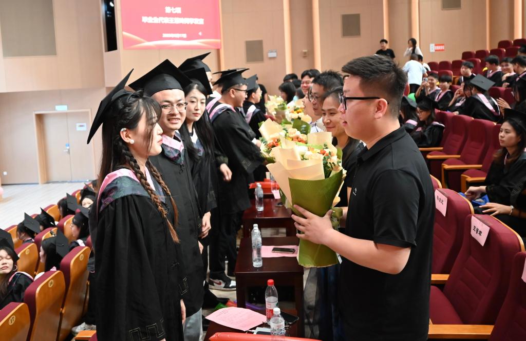 毕业生们精心准备的鲜花成为了这盛大节日里最温暖的礼物,向辛勤耕耘的老师们表达了最深的敬意和感激。典礼在毕业生领唱的《闪耀》中落下帷幕。祝愿毕业生们以梦为马,不负韶华,勇敢奔赴属于自己的星辰大海!