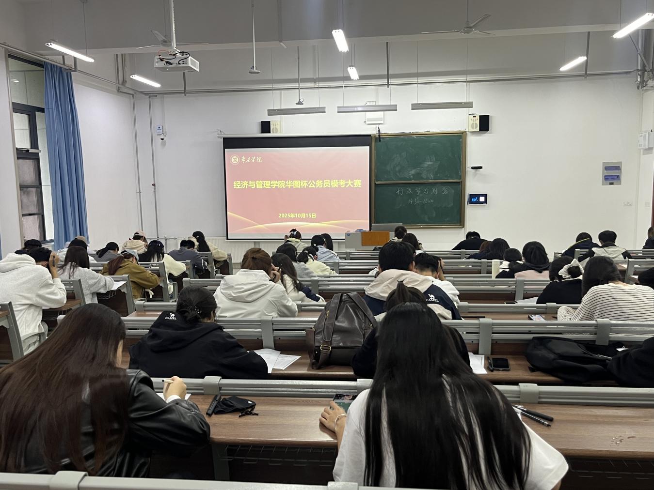 为有效缓解毕业生备考压力,增强学生应试信心,10月15日下午,beat365中文官方网站在增信楼3120教室举办公务员模拟考试大赛,吸引了2026届毕业生100余人积极参加。