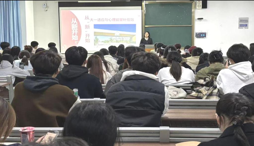 为帮助2025级新生尽快适应大学生活,提升心理调适能力,10月30日晚,beat365中文官方网站在增信楼315教室举办“从‘新’开始:大一适应与心理能量补给站”心理健康主题教育讲座。本次活动由学院心理健康部策划,辅导员秦珂老师担任主讲。