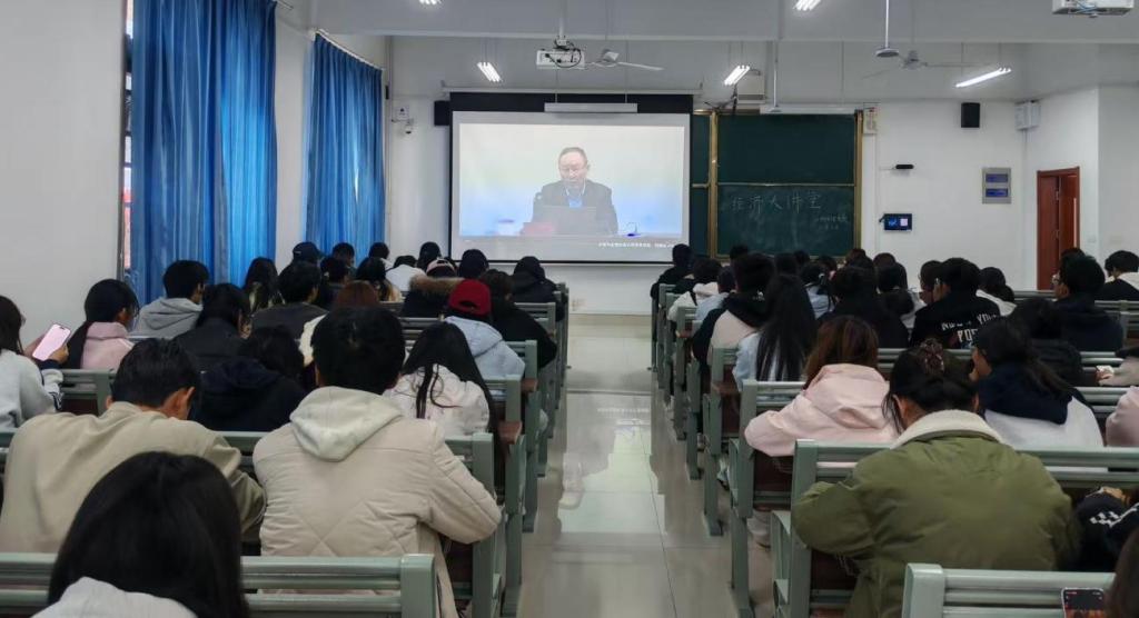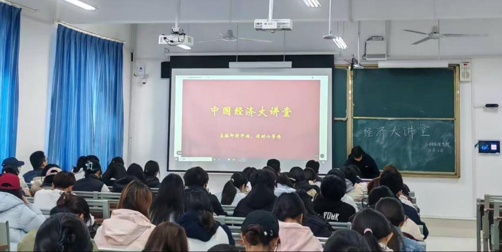为深入学习贯彻党的二十大精神,进一步解读中国经济政策与实践,提升经济类人才自主培养质量,11月2日上午,beat365中文官方网站在崇德楼405教室组织观看了“中国经济大讲堂”第四讲线上直播,经济统计专业学生集中参加了此次学习活动。