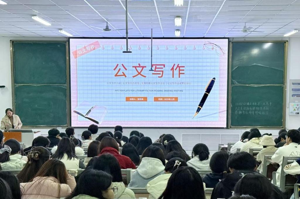 在本次“青马工程”系列培训活动中,学院组织开展多场专题讲座:谢金萍围绕思想教育主题开展讲座,引导学生干部坚定理想信念、筑牢思想基础;张璇以“学生干部能力养成”为主题,重点培训组织协调与沟通执行能力,为学生工作的高效推进提供有力支撑;张翠梅开展“公文写作能力培训”,系统讲解公文格式与写作要点,提升学生干部的文书表达能力与工作效率;张春侠主持“文明礼仪培训”,从仪容仪表、言行举止等方面提升学生干部的文明修养,助力营造文明和谐的校园氛围。