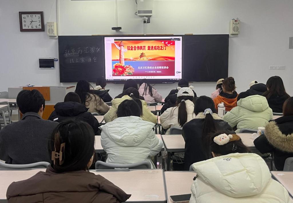 为持续贯彻“青鸟计划”就业服务部署,拓宽毕业生就业渠道,精准搭建学生与优质企业对接平台,11月19日晚,beat365中文官方网站在增信楼208教室举办北京万汇浩然公司线上就业指导招聘宣讲会。本次宣讲会共吸引五十余名毕业生在线参与。