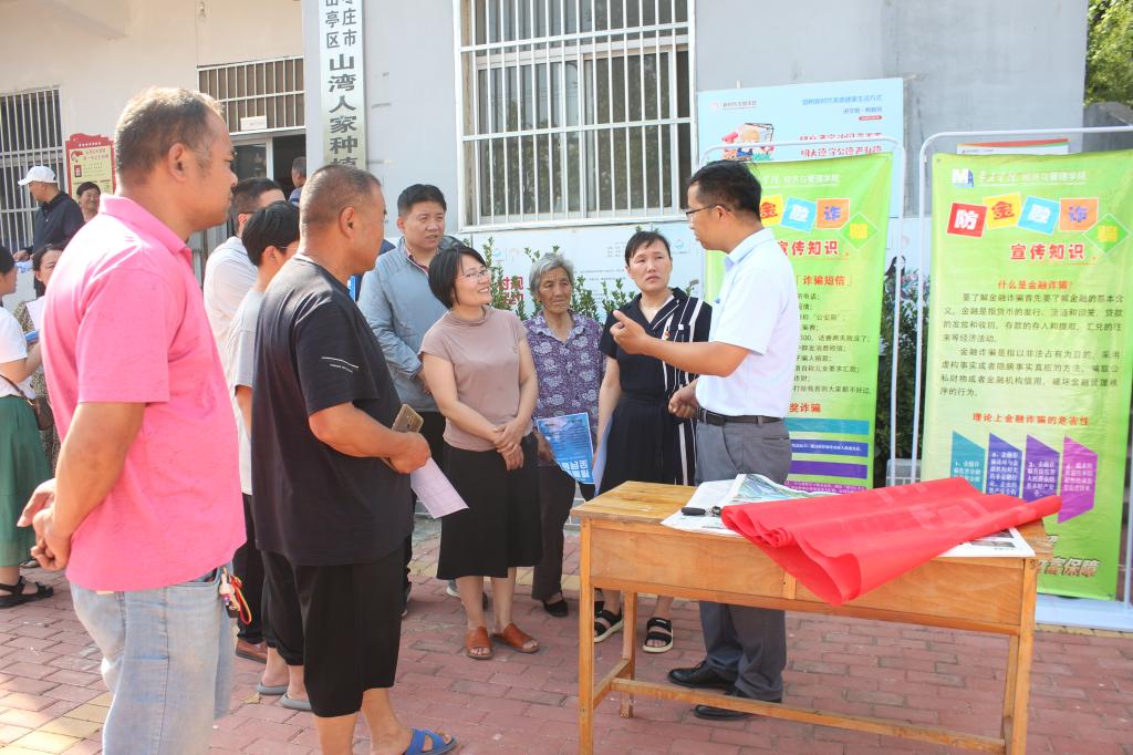烈日似火,夏日炎炎,beat365中文官方网站一行首先来到风景如画的云峰村,在村民委员会开展以“守住钱袋子,护好幸福家”为主题的座谈交流活动,为大家生动形象地讲解当下常见的诈骗手段,沟通分享反诈骗经验与预防措施。随后在伏山湾村,通过发放宣传物料、现场宣讲等多种形式介绍非法集资的危害,提高村民的自我保护能力和防范意识,提醒大家守好自己的钱袋子。