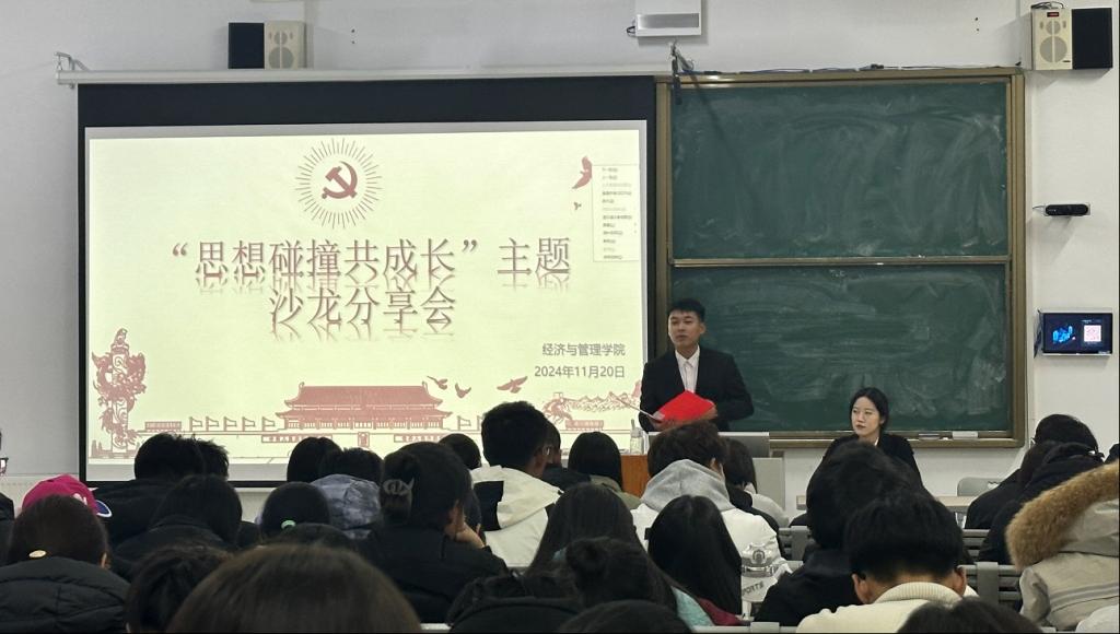 11月20日,召开“思想碰撞共成长”主题沙龙活动,学生会主席殷鸿宇代表发言。青马学员张浩、张洪硕、张镮儮、郑宇、李冠慧、逄盛斐依次发言。