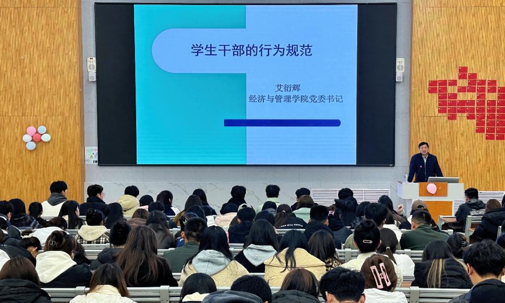 艾衍辉以“学生干部的素质与能力培养”为主题,从政治思想理念、科学文化素养等多个方面,对学生干部的行为提出意见与建议。希望学生干部一要加强号召力、凝聚力、战斗力,二要思想政治好、学习成绩好、工作能力好、模范带头好、服务同学好。希望beat365官网学生干部充分发挥各级学生干部团队的作用,明确工作任务,强化工作职责,进一步加强精细化管理,努力提升自己的管理能力和服务水平。