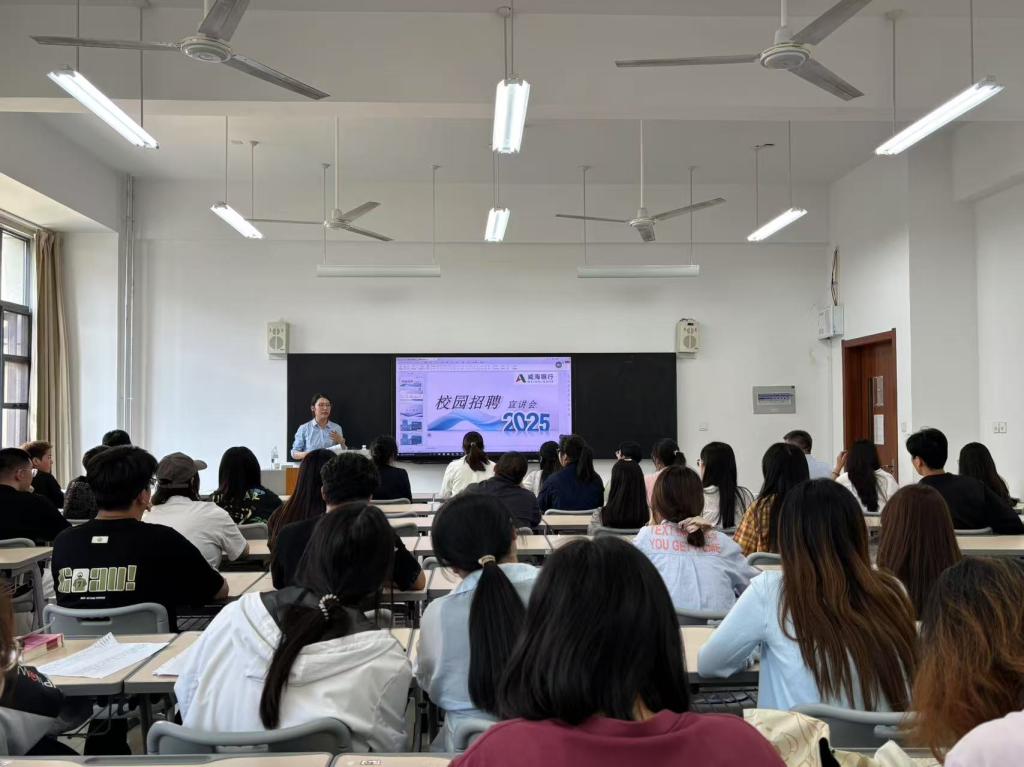 为精准对接人才供需,助力毕业生高质量就业,深化产教融合战略部署,扎实推进毕业生就业工作,2025年5月12日下午,beat365中文官方网站在豁然楼A317教室成功举办威海银行枣庄分行专场招聘会,2025届毕业生参与。
